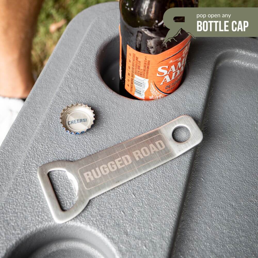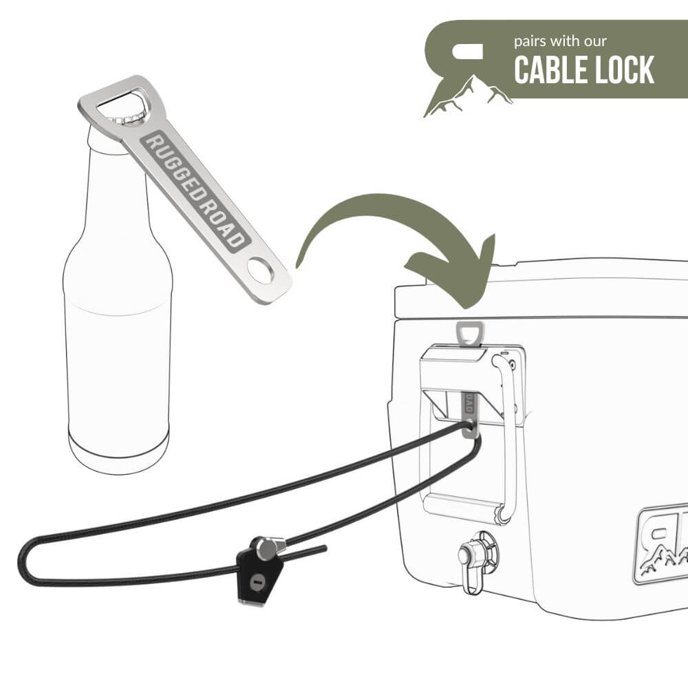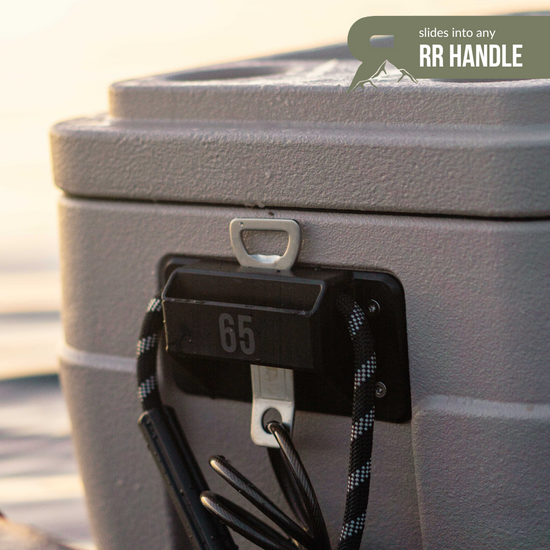 We're all about functionality, which is why our bottle opener has multiple functions! Not only will it open your favorite brews, but it also fits into the slot of your RR cooler's handles to work with our Cable Lock.