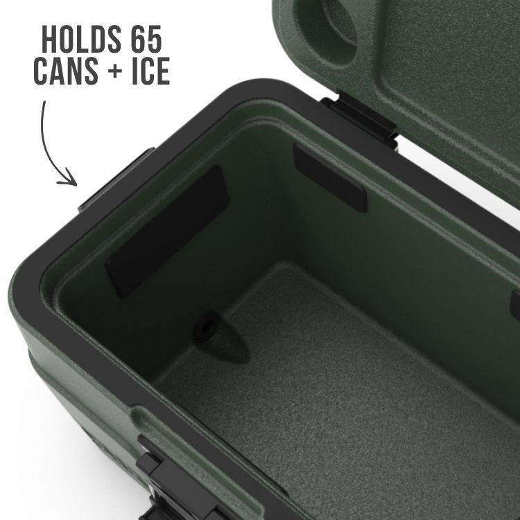 - Holds up to 65 12oz cans plus ice