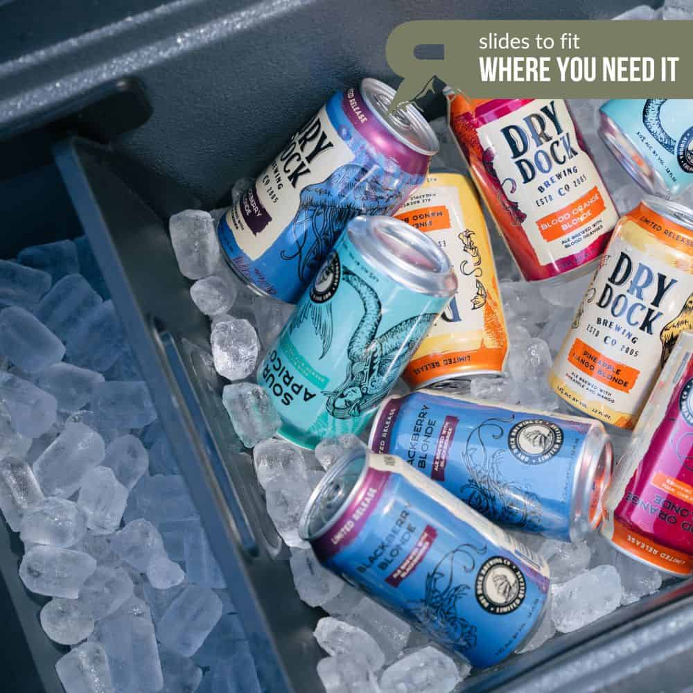 The Sliding Divider can be inserted to separate your drinks from your food, or anything else you might find in your cooler! Most other coolers have a single slot for a divider to fit into. We feel as though a one-size-fits-all approach only works in some situations, which is why we designed our divider to slide throughout your cooler, so you can divvy up the space however you like!