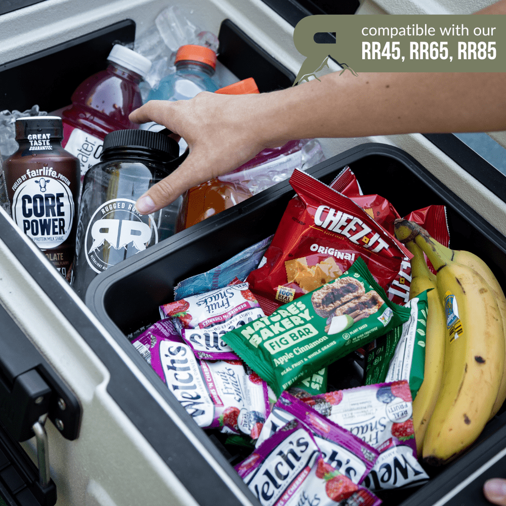 Our Snack Rack, which is included in all of our V2 coolers, was designed with functionality in mind. It fits seamlessly within your cooler to keep your snacks, keys, and other dry goods, well, dry! The Snack Rack can slide to fit wherever you need it, and can be held in place when paired with our Sliding Divider.