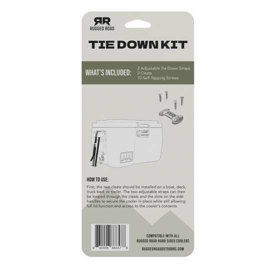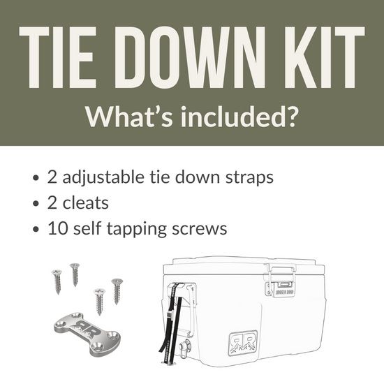 Secure your cooler to your boat, deck, or truck bed with our tie down kit. Featuring rust-proof stainless steel hardware and adjustable straps, this kit consists of premium materials to keep your cooler in place!